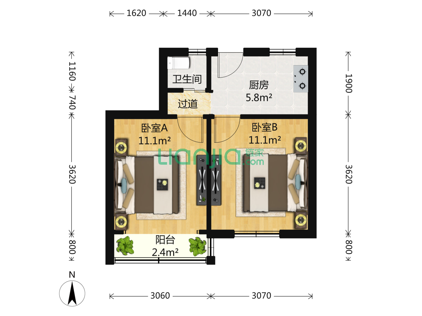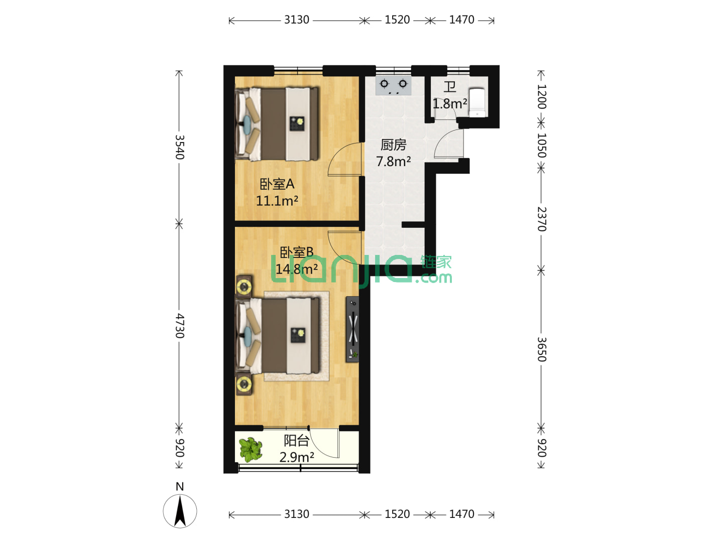 2室1厅1卫 48㎡