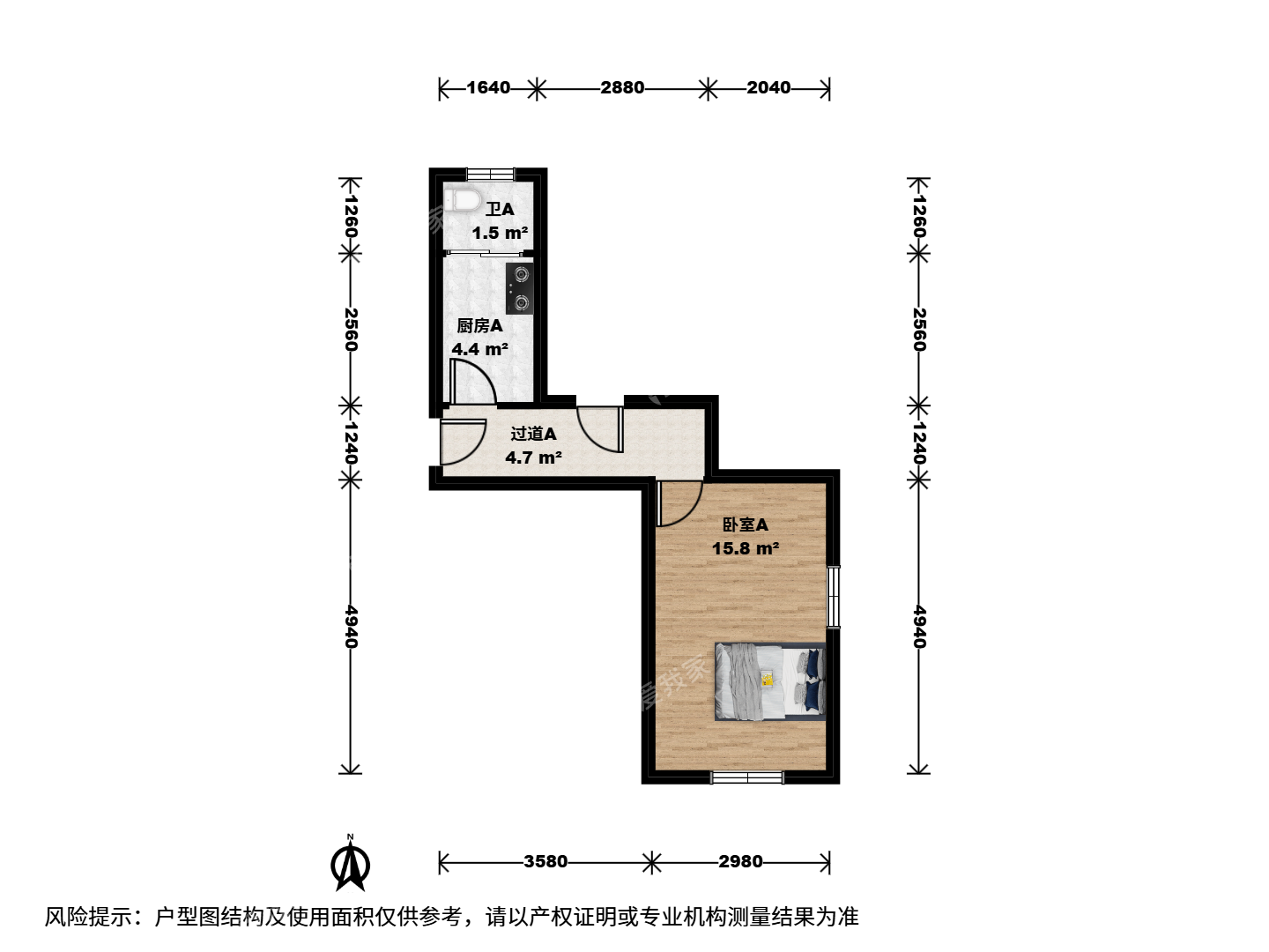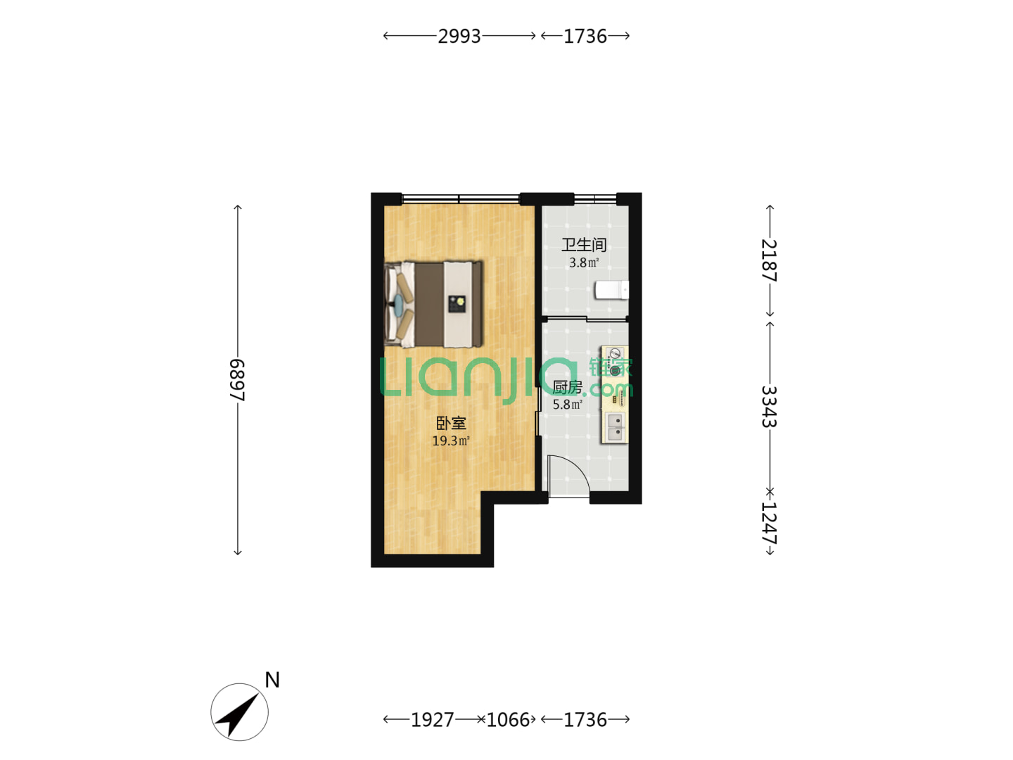 1室1厅1卫 34㎡