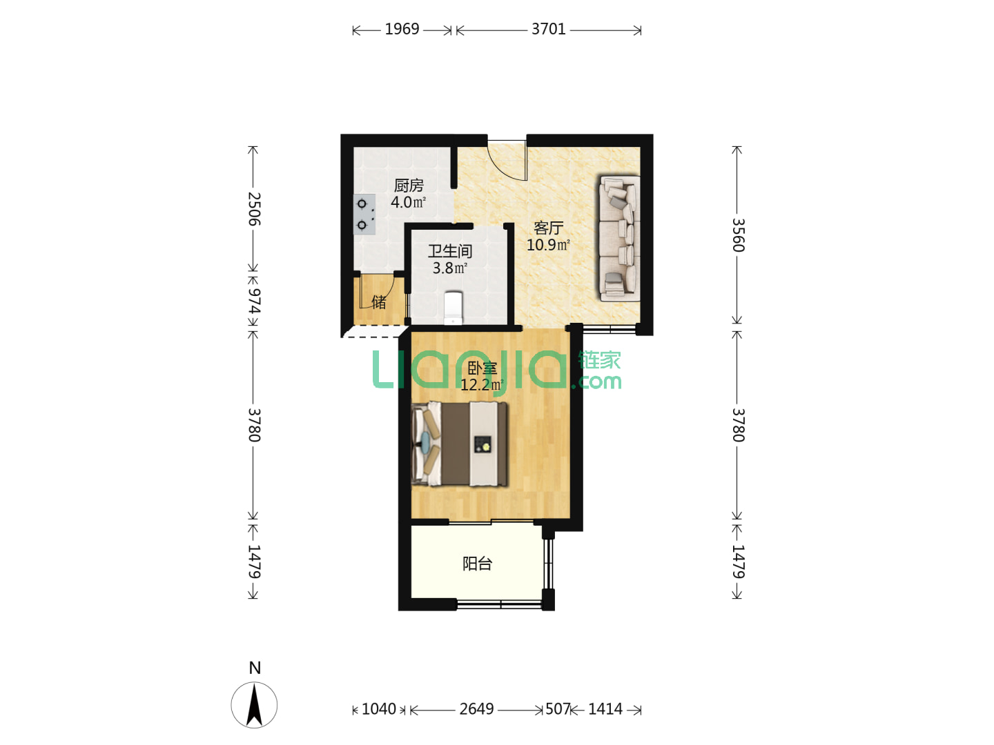 1室1厅1卫 53㎡